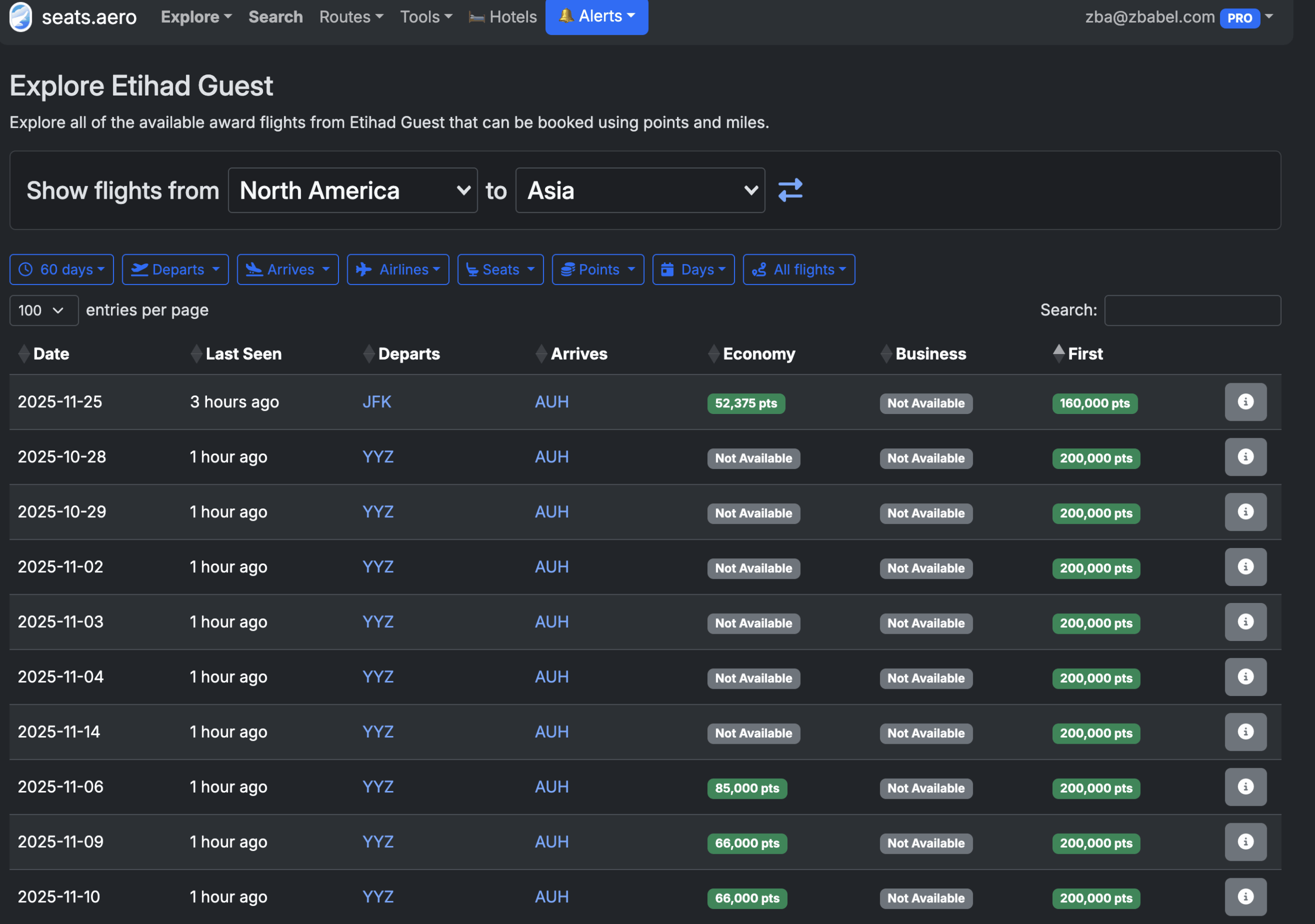 The best way to find premium Etihad Award Space is Seats.Aero