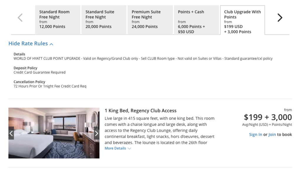 This hotel always has fun upgrade options and it didn’t disappoint. Club, standard and premium were all available. There were so many options I had to click the arrow to see them all