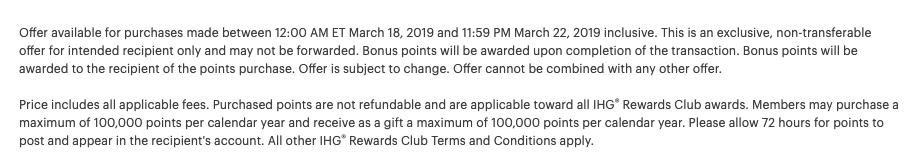Usually IHG has a 100k max on the amount of points you can purchase in a year, but has raised it as high as 250k in the past ( pre bonus ) at the same 1/2 a penny a point.