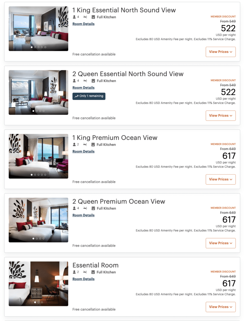 Let’s look at the Kimpton Seafire in the Cayman Islands on a 1 and 4 day trip – this example is from 2022 with a 100% bonus, but it is purely to illustrate the mathematics.