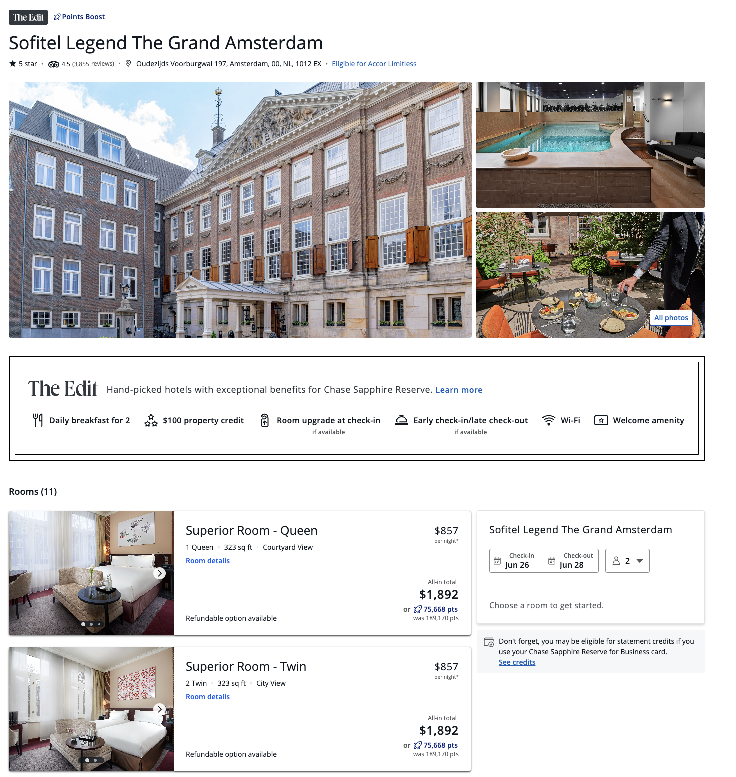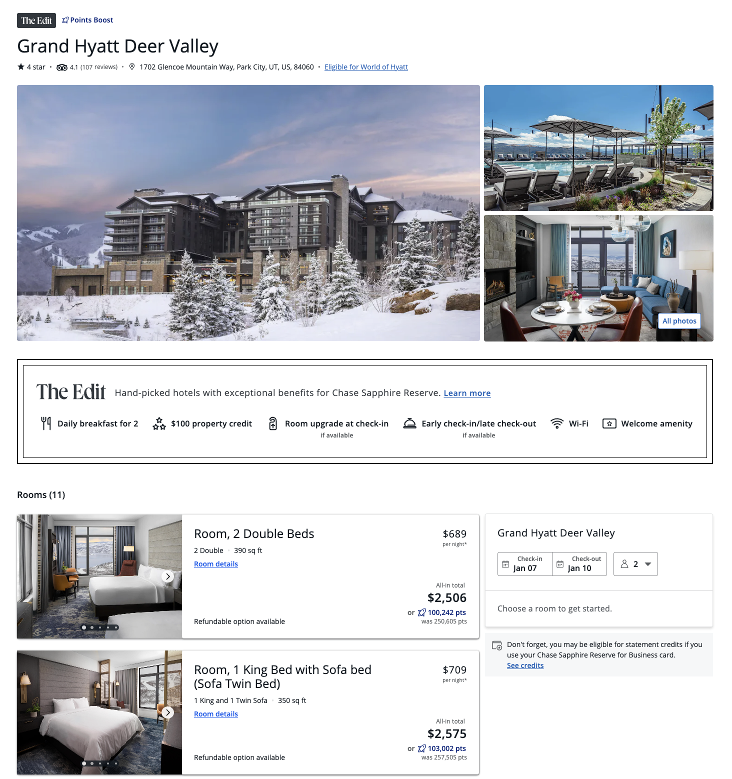 Chase has just announced a 2.5x increased redemption rate when using PointsBoost at select properties as long as you have one a Chase Sapphire Reserve® or Chase Sapphire Reserve℠ for Business. Usually these cards offer up to a 2x boost. 2.5x amounts to a redemption rate of 2.5c per point which is really amazing. These select properties are all a part of The Edit meaning you’d get those benefits as well ( and more than likely you’d be able to earn points with the hotel’s loyalty program ). 2.5c is awesome if these resorts work for you.