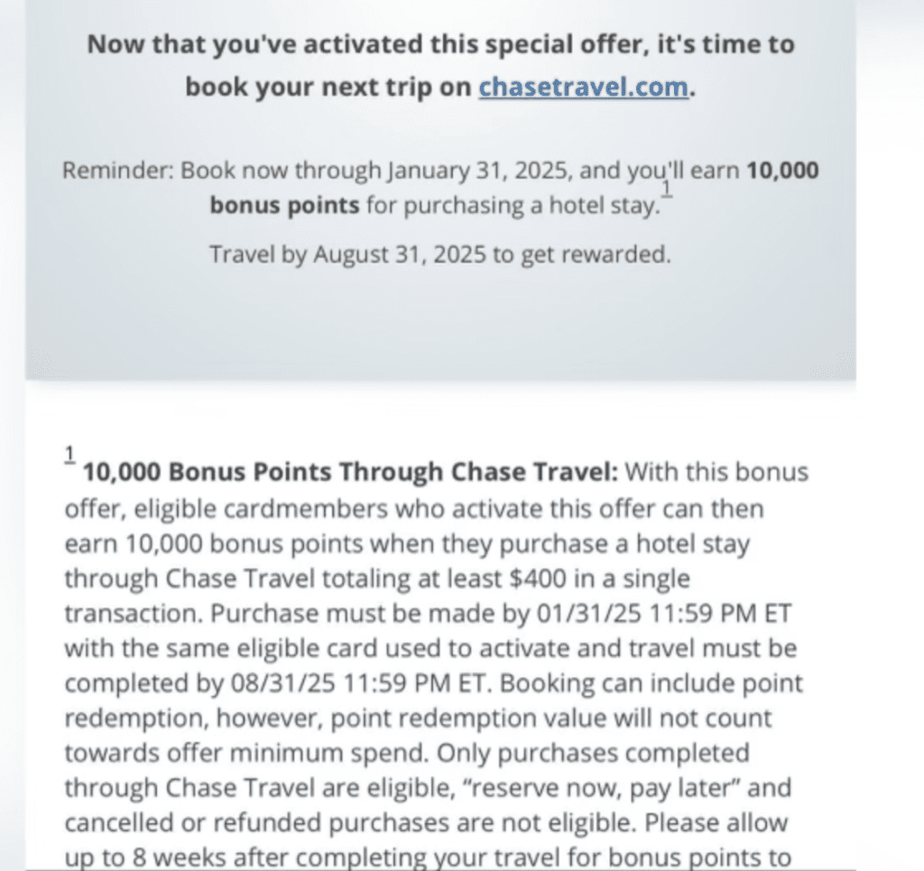 Details on the 20k or 10k bonus – must be booked through Chase Travelâ„¢