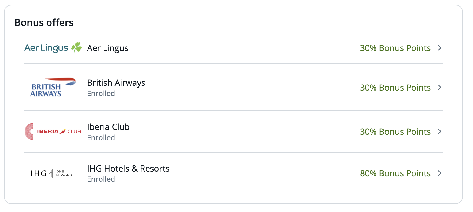 30% transfer bonus to BA, Iberia, Aer Lingus