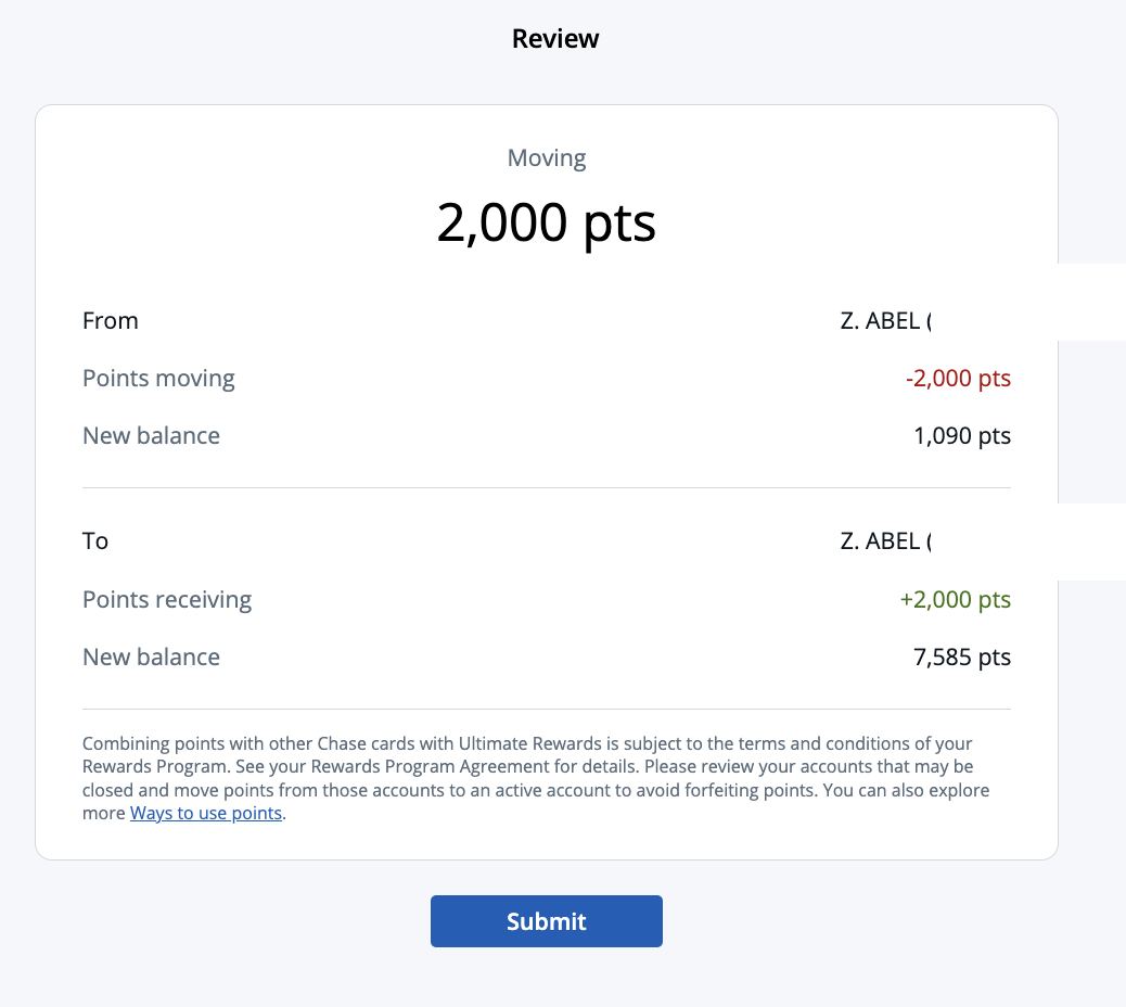 How to combine Chase Ultimate Rewards between accounts