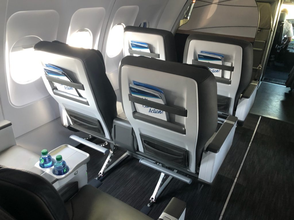 In all honesty, when I changed flights I didn’t even pay attention to the plane type, cabin layout, etc so when I entered the plane and saw a brand new cabin I was shocked. Interestingly enough, my fiancee and I were invited to pre-board, and thankfully, this meant I’d get a great clear shot of what unveiled itself.