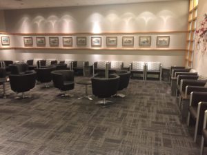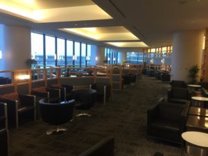 Dave and I arrived on our Japan Airlines Business Class 787-8 flight before the lounges were open. It struck me as odd that flights would arrive with passengers in transit and the lounges wouldn’t be open to welcome them. ANYWAYS. We headed to the American Airlines Admirals Club Tokyo NRT to line up. Why you ask? Dave and I wanted to change some flights around once we landed in Chicago after our JAL First Class experience. In order to make my routing work I was scheduled to layover for 23 hours in Chicago, which wasn’t ideal, but doable. My final destination was Indianapolis and I wanted to see if the agent could print me off a standby boarding pass for a flight the same day as my arrival into Chicago. Being Executive Platinum, having no checked baggage, and about a dozen flights that day between ORD and IND I felt pretty confident I’d clear. Unfortunately, she wasn’t able to satisfy my request, but while she was attempting to do so, I was able to check out a completely empty Admirals Club.