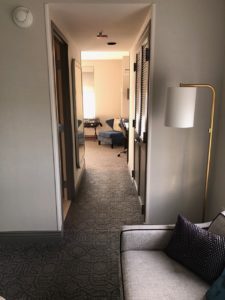 The Suite we booked was a standard one bedroom executive tower suite. It’s advertised as roughly 500-600 sq feet. I’d have guess it was on the larger side of this range with all corner vantage points. For the roughly $250 a night ( including $85 a night for parking )we were paying ( and the 2nd was free ) it was a great deal.