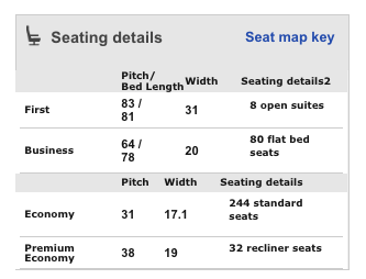 Here’s what their cabin layout looks like via SeatGuru.com and the seat specs