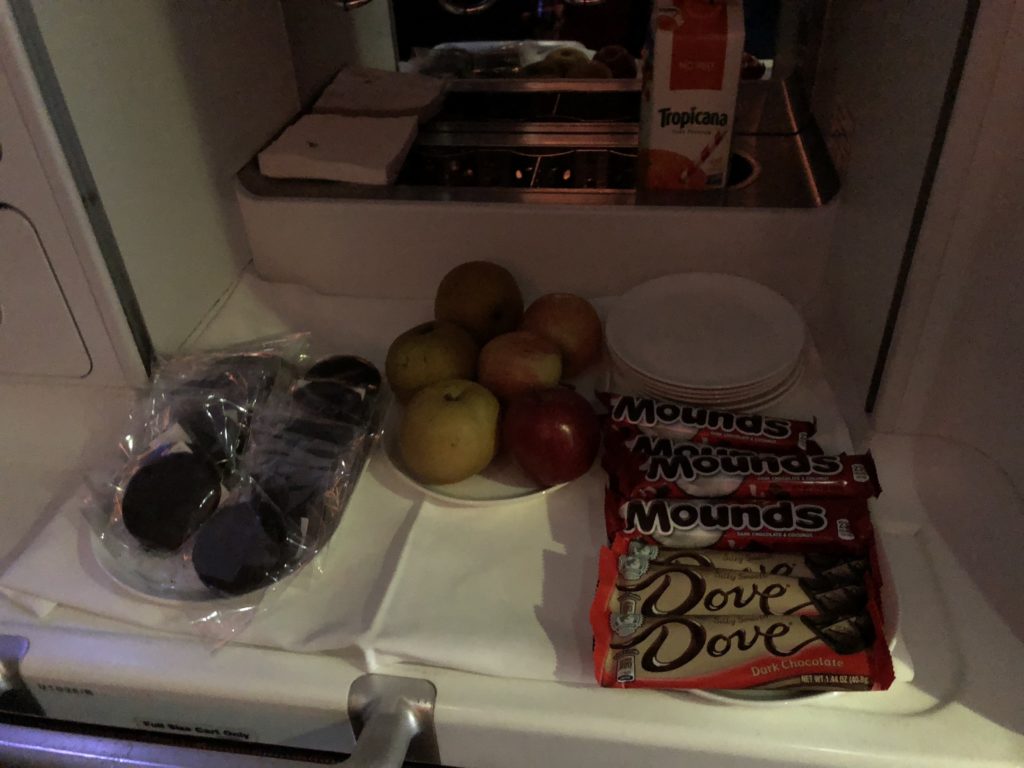 After dinner, full and PJ’d up, we ventured upstairs to peek in at business class and check out the upstairs bar. Not so much a bar, and quite dark, we spent but a few minutes there before hopping back downstairs to our luxurious suites.