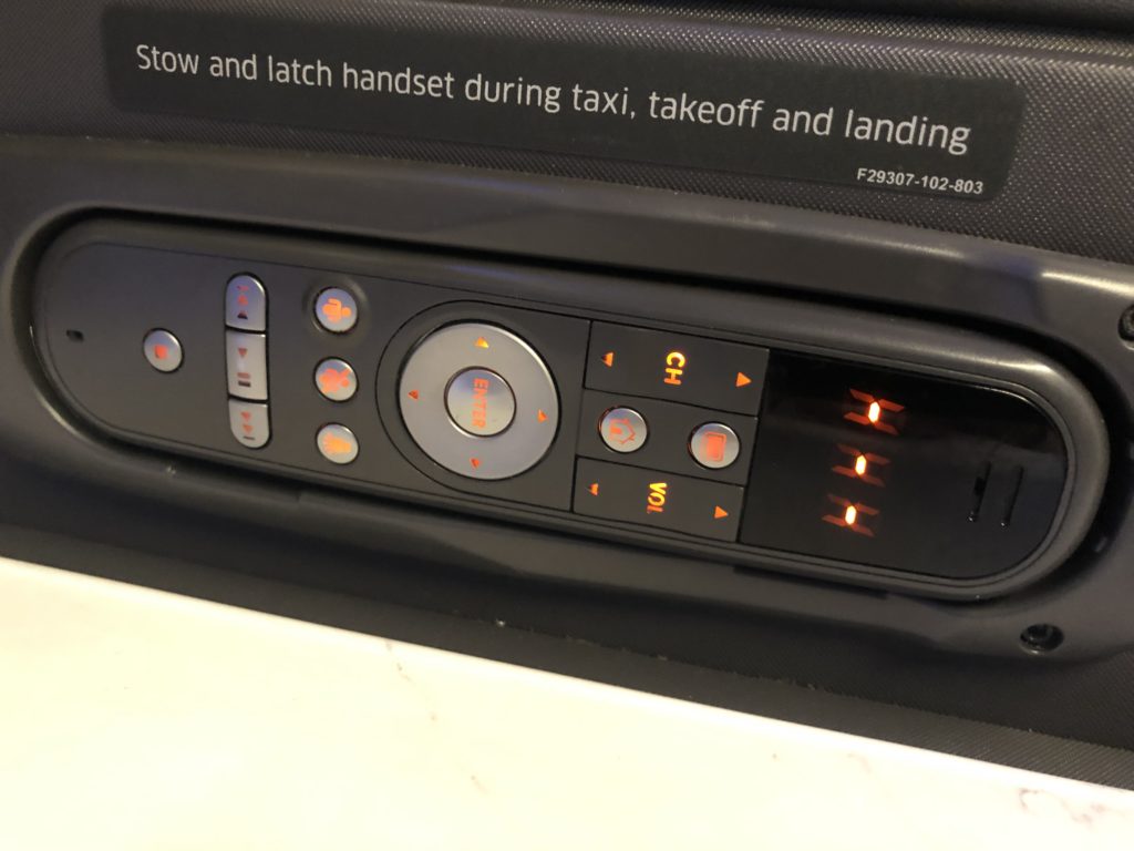 The IFE is nice and touch screen. I find the touch screen much easier to use than the handheld. You can see there is a small phone or magazine storage compartment and a usb port.