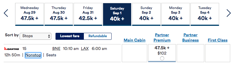 Much better! You can see on September 14th there is space available on QF11 from LAX to JFK. If you wanted to book this in conjunction with the inaugural, you could, but you’d need to call in and give them the exact flight information you see below.