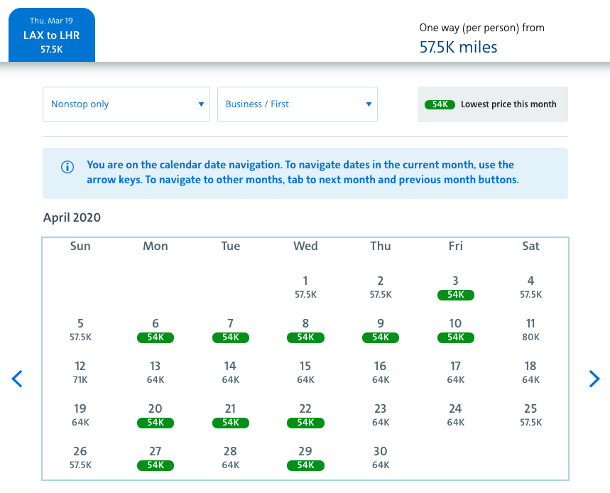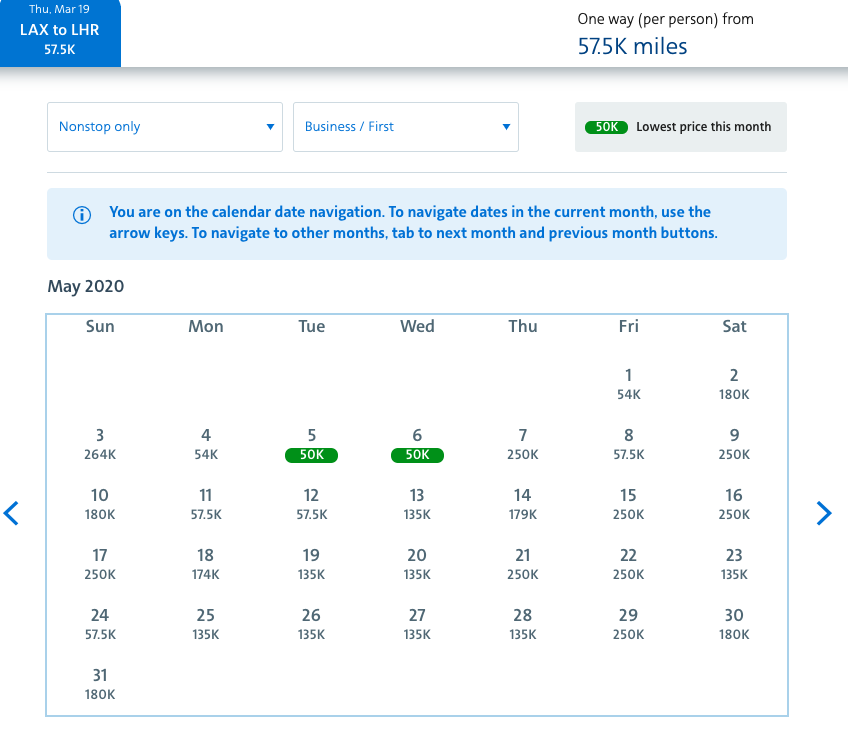 If you look at other cities you’ll find rates drop down to 50k, or if you’re departing from LA, you can connect and I found some dates at 50k